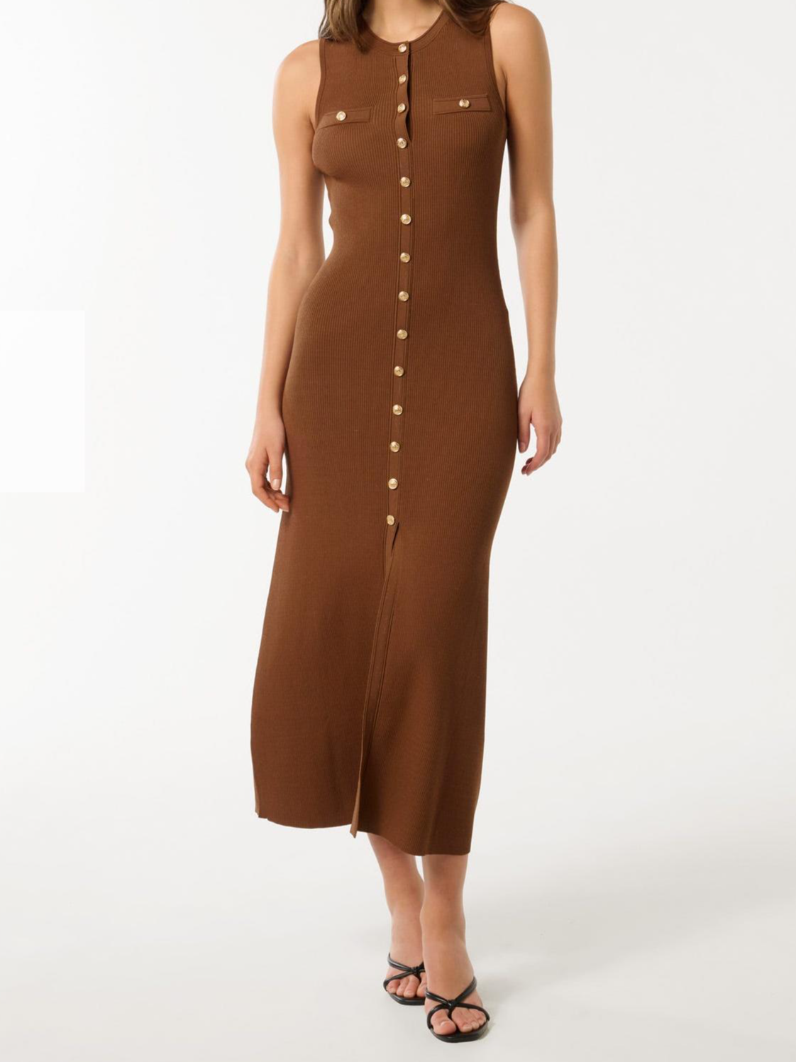Khaki Button-Through Knit Dress 47264243